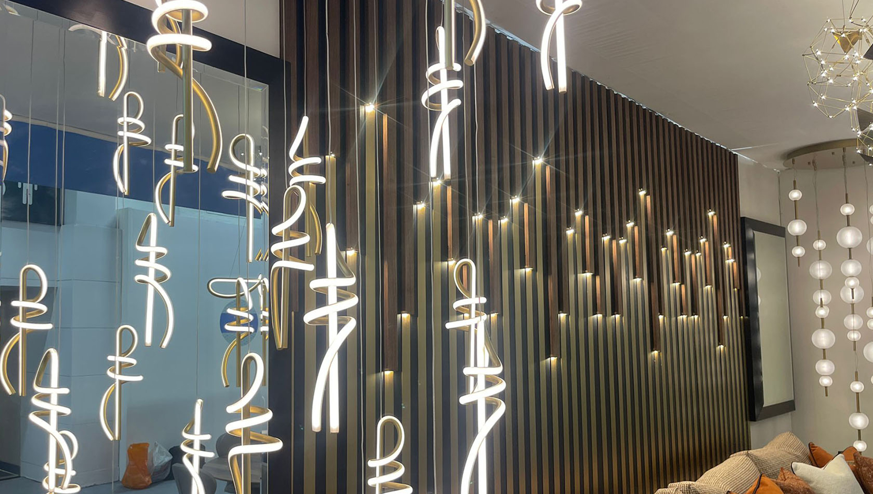 Brief: To supply a seamless lighting control to a major exhibition bespoke concept design for a wood slat wall.