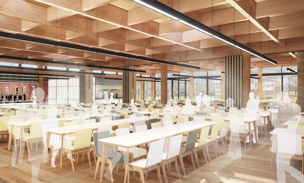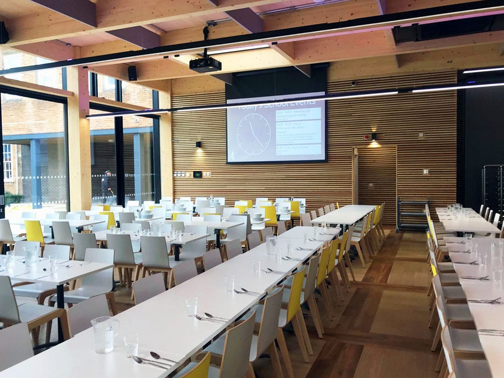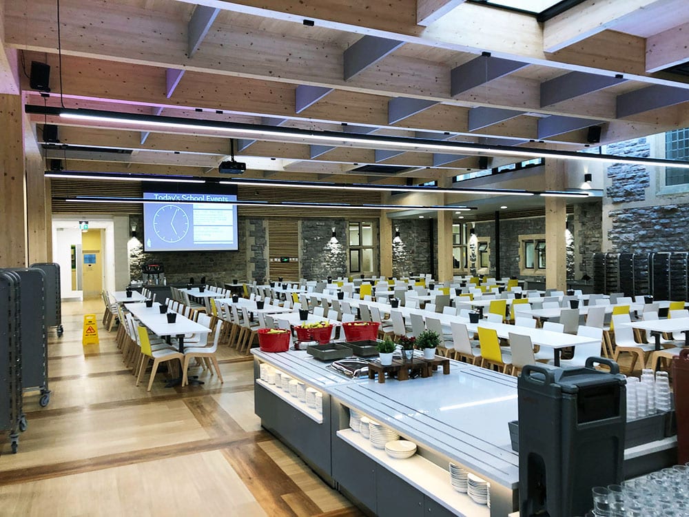 This school has built a state of the art dining hall with a large modern kitchen to accommodate the whole school community. The light & spacious facility will cater for 1600 covers and seat up to 400 people at any time.